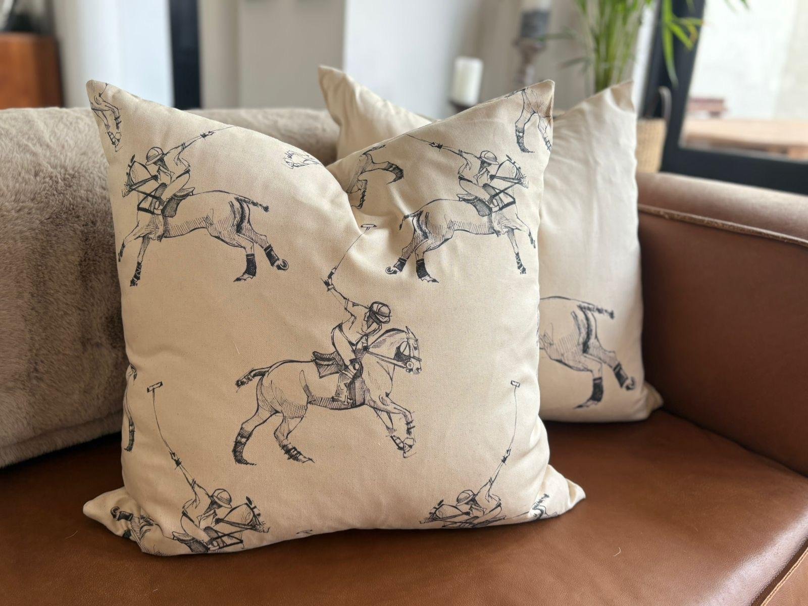 Made from 100% cotton, this cushion features a sophisticated polo pattern with a natural cotton finish that will effortlessly complement any décor. The neutral colour and charcoal print adds a sophisticated blend of the energy of polo and elegance of the polo pony making it the perfect accessory for your living room, bedroom, or a cozy corner.